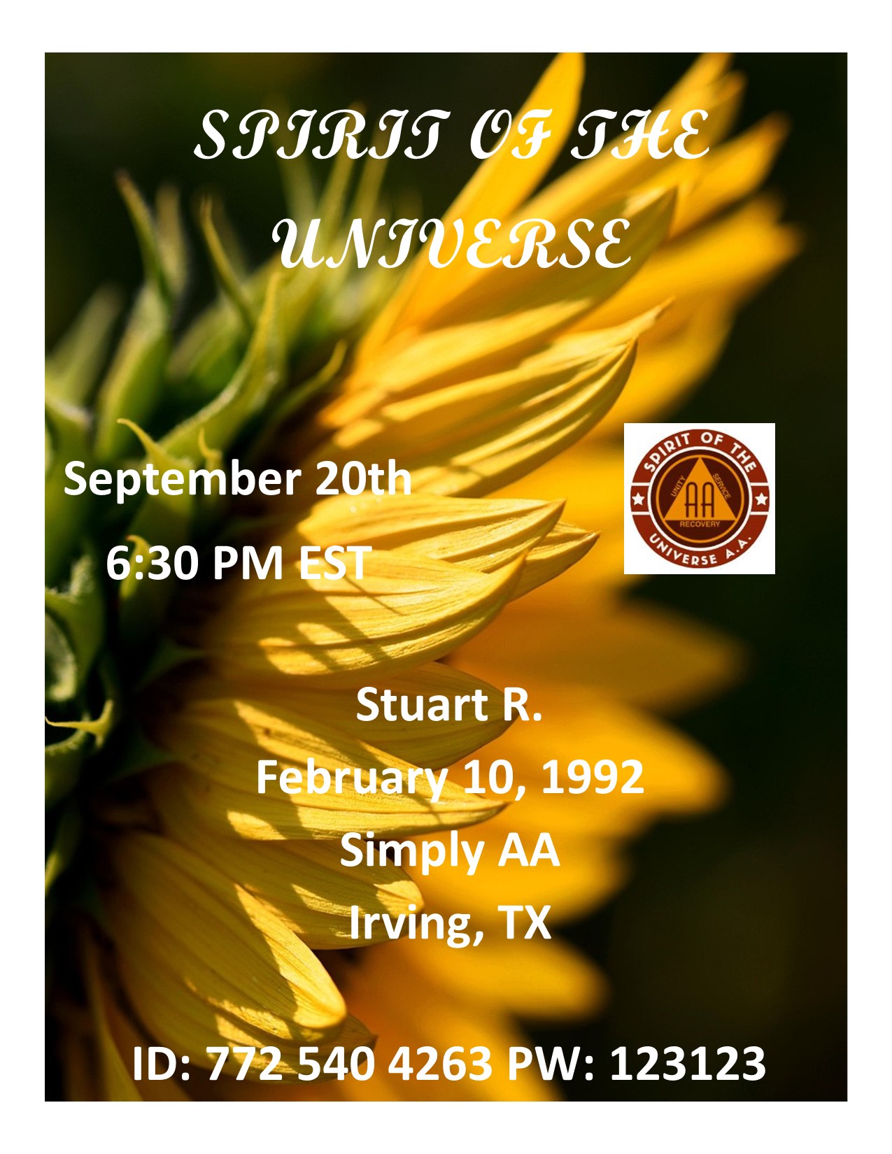 2025/11/01 – Stuart RBy brianl / November 2, 2025 Stuart RIrving, TXHomegroup: Simply AASobriety Date: February 10, 1992