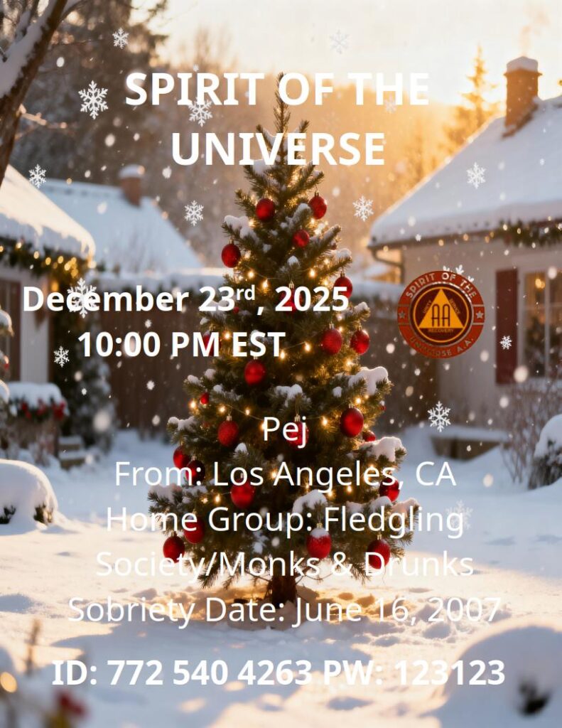 2025/12/23 – PejBy brianl / January 10, 2026 12/23/25 @ 10:00 PM ESTPejFrom: Los Angeles, CAHomegroup: Fledgling Society/Monks & DrunksSobriety Date: June 16, 2007