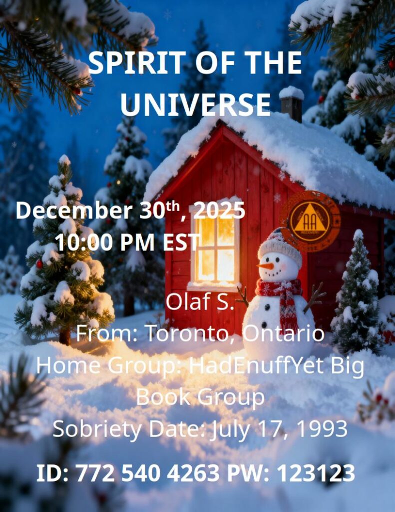 2023/12/30 – Olaf SBy brianl / January 10, 2026 12/30/25 @ 10:00 PM ESTOlaf S.From: Toronto, ONHomegroup: HadEnuffYet Big Book GroupSobriety Date: July 17, 1993